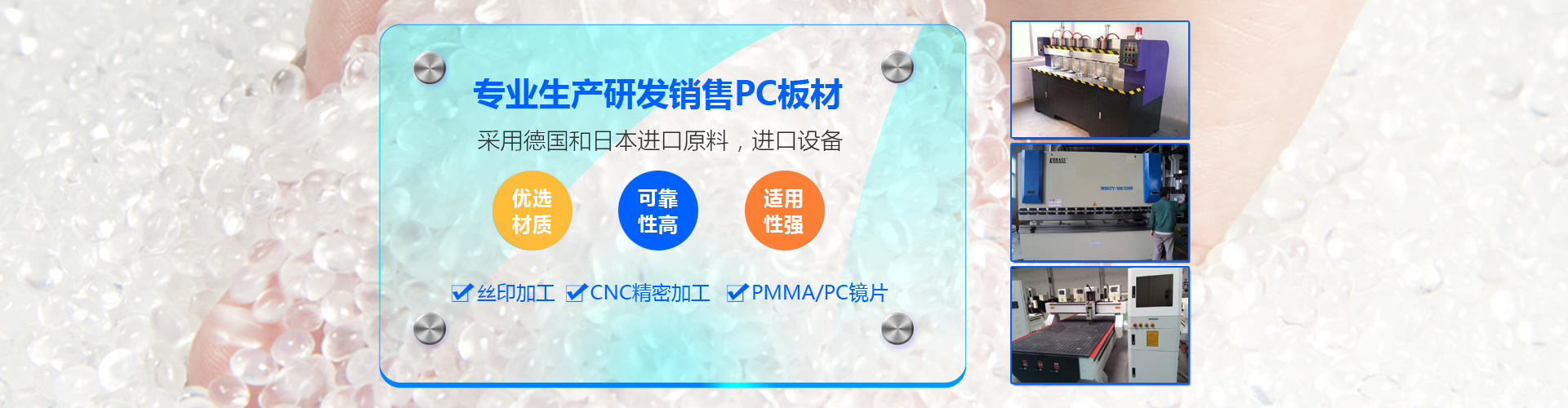 我公司擁有先進(jìn)的大型熱成型吸塑機(jī)、CNC精密雕刻機(jī)、進(jìn)口數(shù)控沖床、折彎機(jī)、裁切機(jī)、銑邊機(jī)、打板機(jī)、恒溫恒濕干燥設(shè)備等專業(yè)的加工設(shè)備,先進(jìn)的加工工藝和豐富的加工經(jīng)驗(yàn)致力于聚碳酸酯(polycarbonate)PC二次成型加工及精度切割,根據(jù)客戶的設(shè)計(jì)圖紙進(jìn)行切割、雕刻、鉆孔、折彎、銑槽、拋光、粘接、吸塑、吹塑、熱壓定型、印刷、噴沙、鍍膜等加工,保持特定的角度和形狀,滿足客戶的要求。先擁有兩個(gè)生產(chǎn)加工車間,是行業(yè)知名且規(guī)模最大的企業(yè)之一。